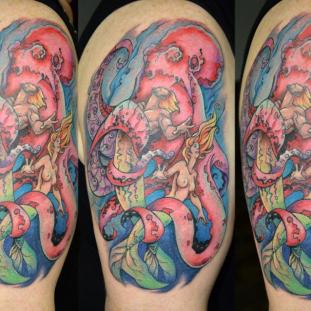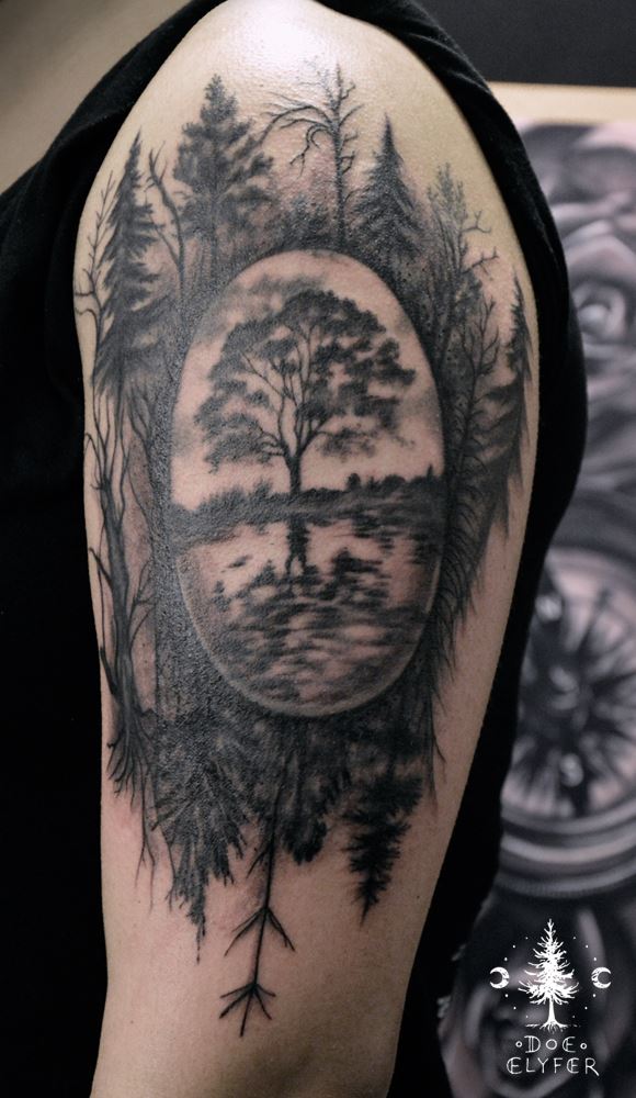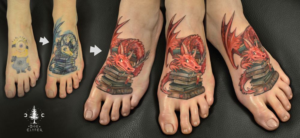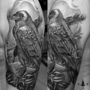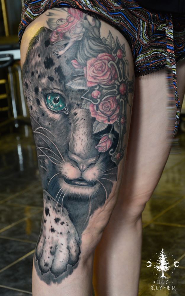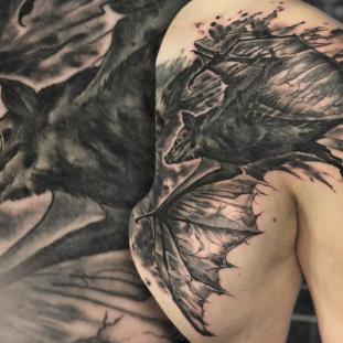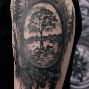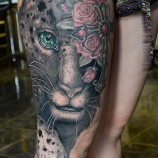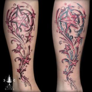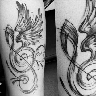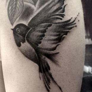 Für meine Tätowierungen benutze ich hochwertigste Materialien, nicht nur für ein hygienisch einwandfreies Arbeiten sondern auch für langanhaltend schöne Bilder mit klaren Farben und lebendigen Kontrasten - auch noch Jahre später. Nach einer ausführlichen Beratung und der gemeinsamen Motivfindung bringe ich zunächst die Tattoo-Vorlage an der gewünschten Körperstelle an. Während meiner Ausbildung bekam ich die Gelegenheit das freihändige Aufzeichnen zu erlernen. Diese Methode bietet viel Raum für künstlerische Freiheit. Es entstehen dynamische und einzigartige Vorlagen, welche die dreidimensionalen Formen des Körpers berücksichtigen. In Kombination mit detaillierten Schablonen bereite ich so die perfekte Grundlage für dein ganz persönliches Tattoo. Dann muss nur noch tätowiert werden! Kontakt]